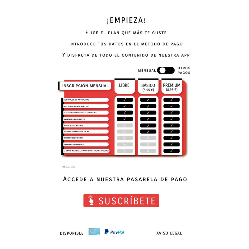 Elige tu plan de pagos en el desplegable y disfruta de todo el contenido de nuestra APP